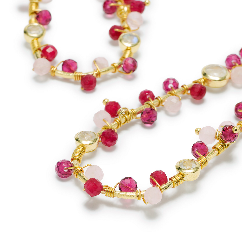 Hydra Large Teardrop Wire-Wrapped Gemstone Earrings Moonstone, Rose Quartz, Pink Jade and Pink Tourmaline
