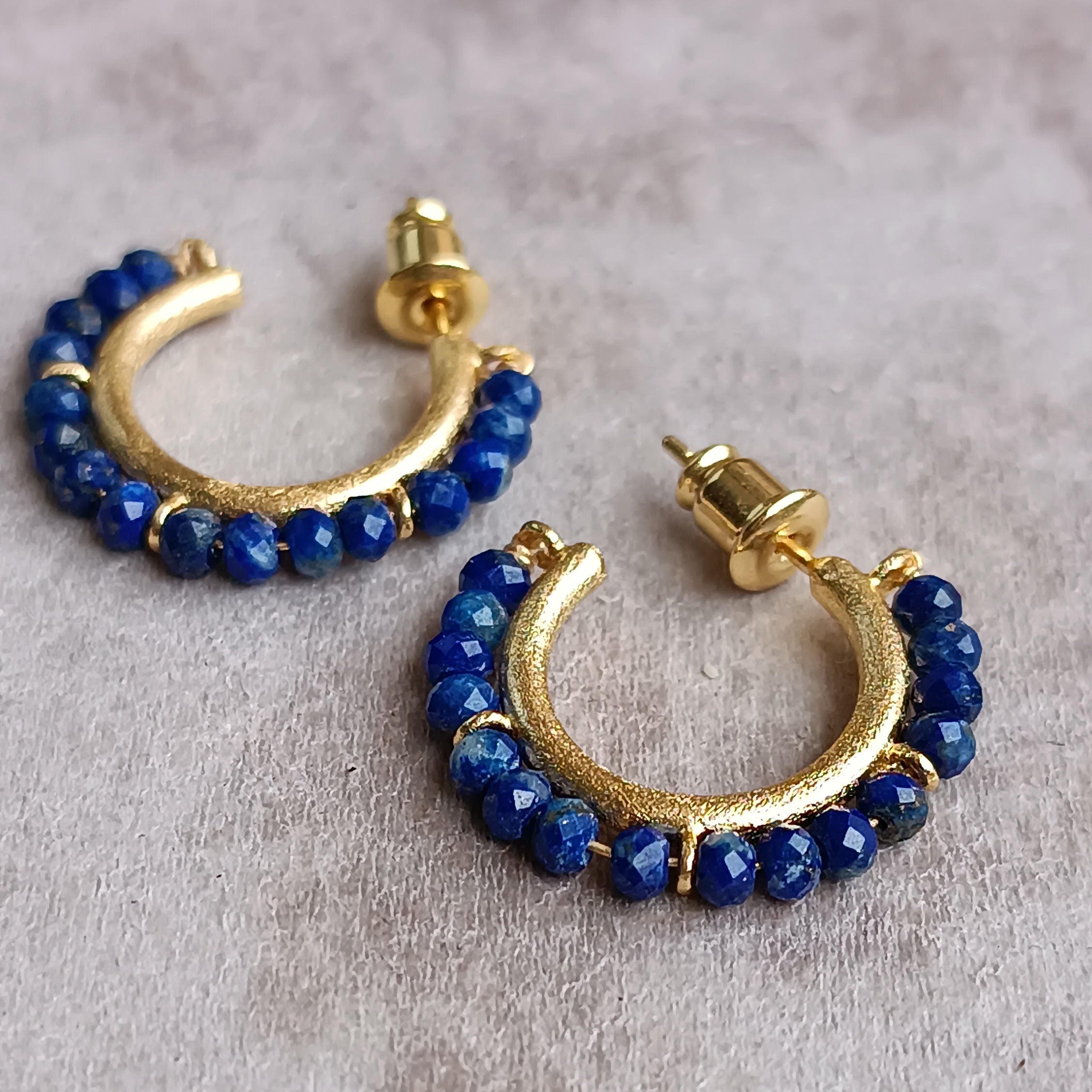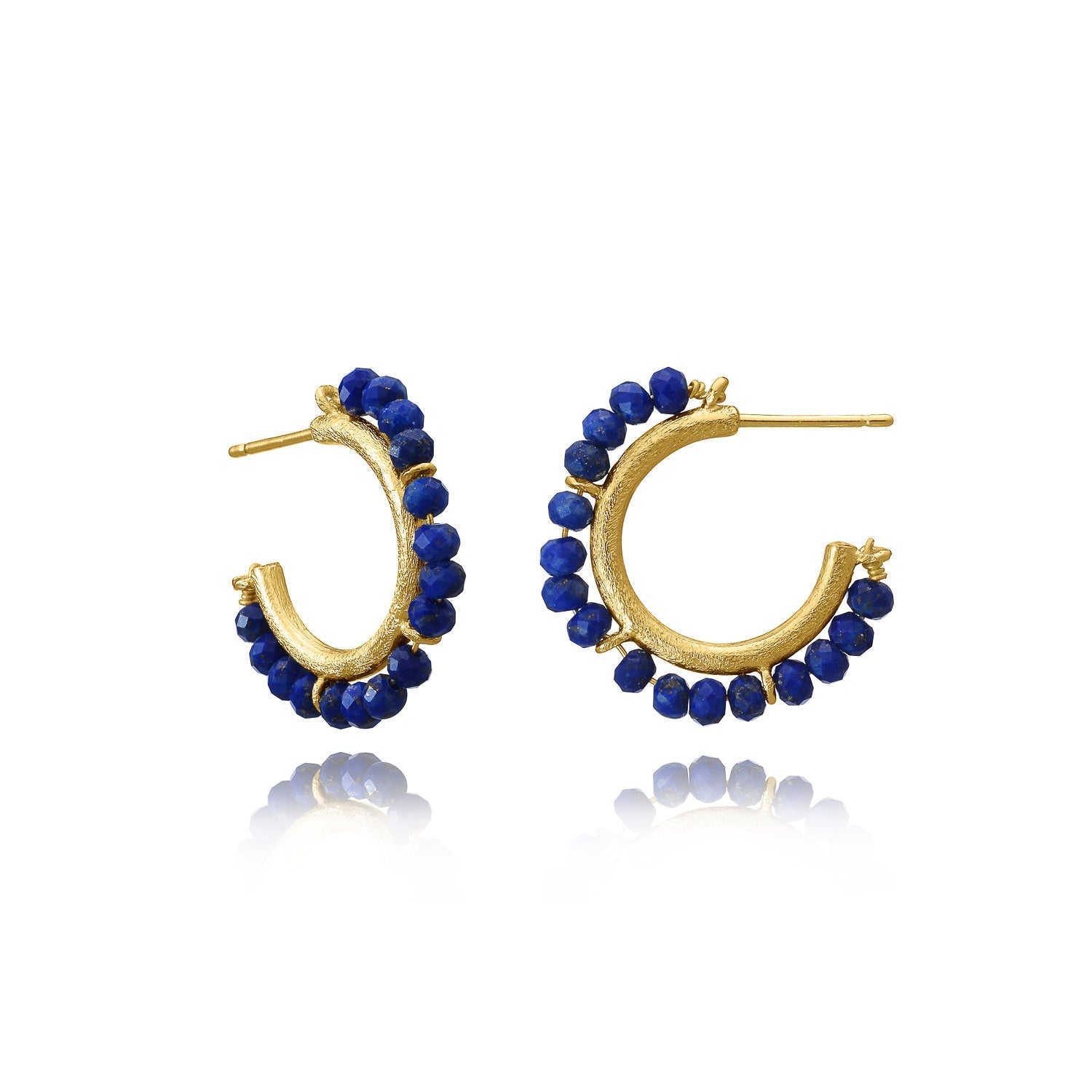 The Ophelia Small Gemstone Hoops are making an elegant return - crafted in textured 22karat gold plate and adorned with hand-selected semi-precious beads, they bring a refined pop of colour to your everyday style.