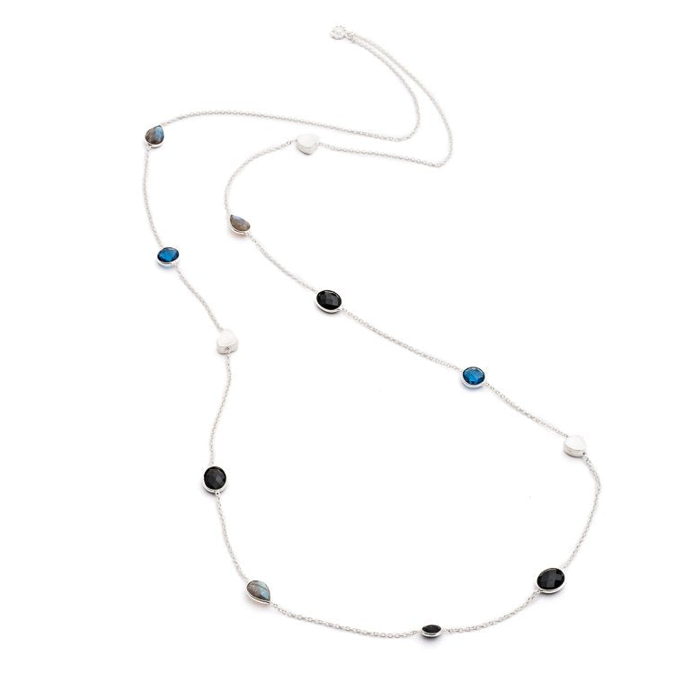 Penelope multi-stone Necklace: in Silver with Iolite, Black Onyx & Labradorite