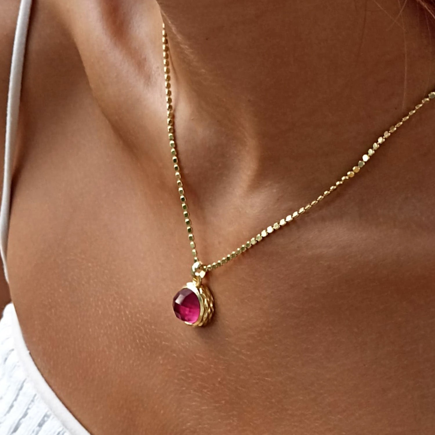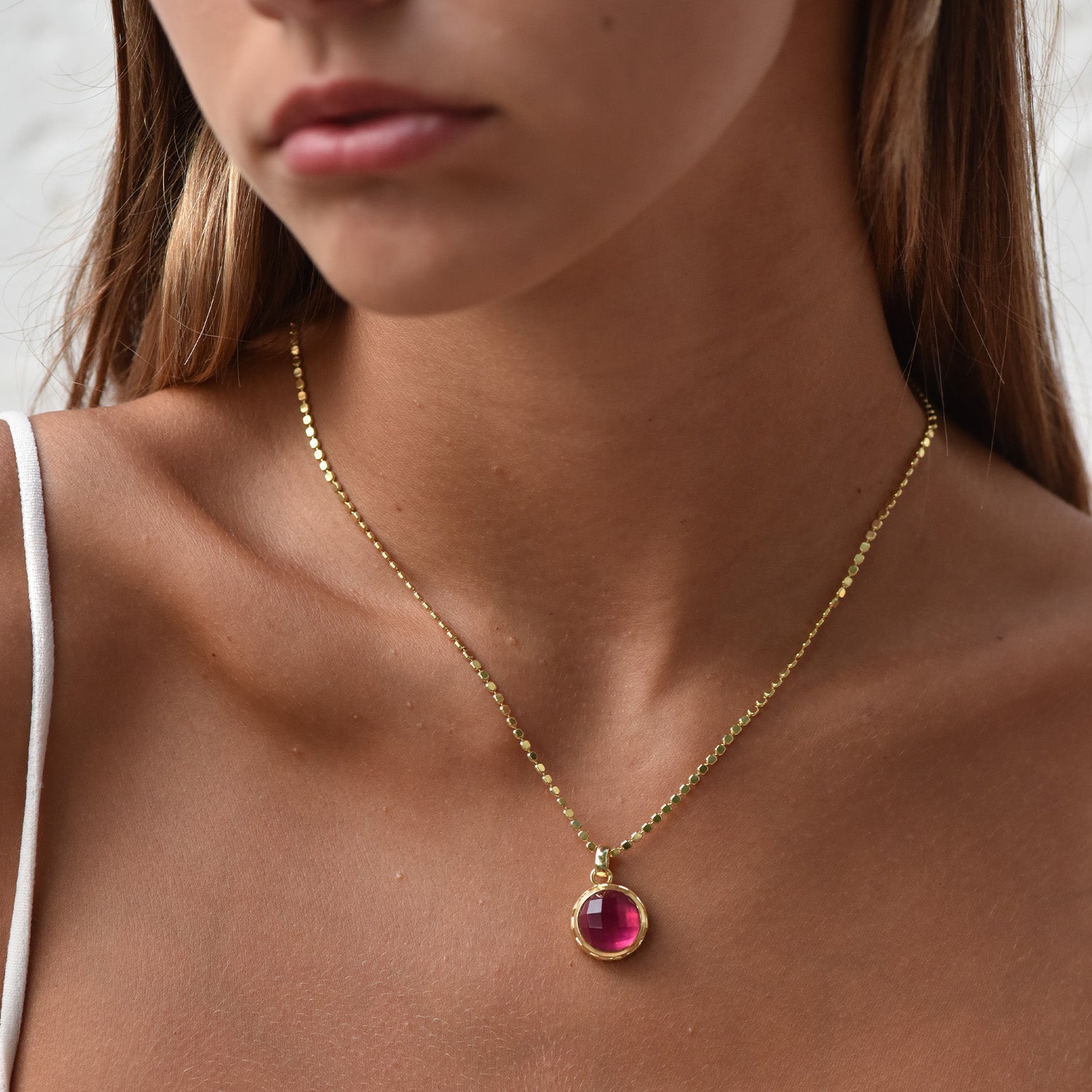 Unsere Apollo-Halskette mit runden, facettierten Edelsteinen ist ein moderner, klassischer Steinanhänger mit dem gewissen Extra. Neben einer ungewöhnlichen flachen Scheibenkette besticht sie durch eine kunstvoll durchbrochene Rückseite und erhabene Diamantdetails rund um die Fassung. Wie heißt es so schön: Auf das Detail kommt es an!
