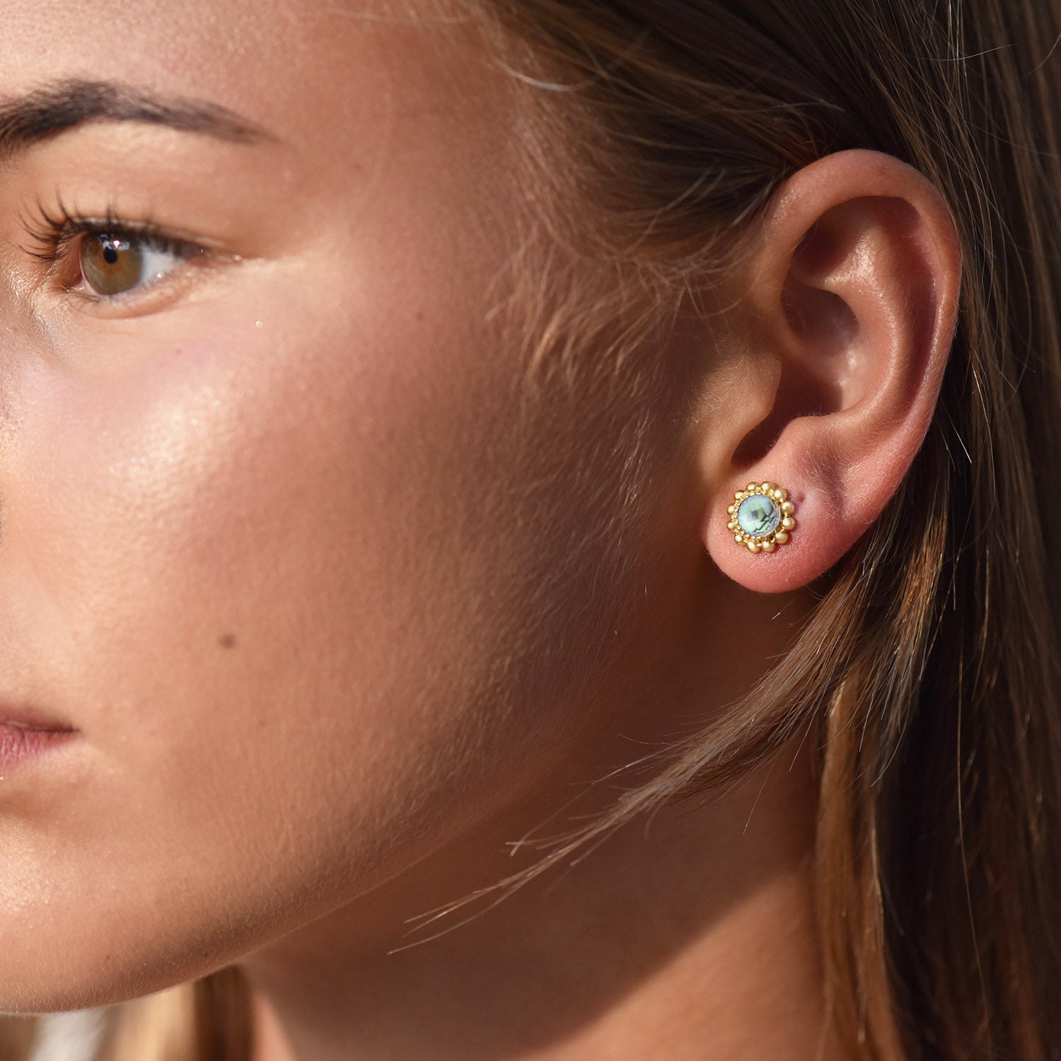 Petra doublet stud earrings with bead detail edge. A simple jewellery box essential.